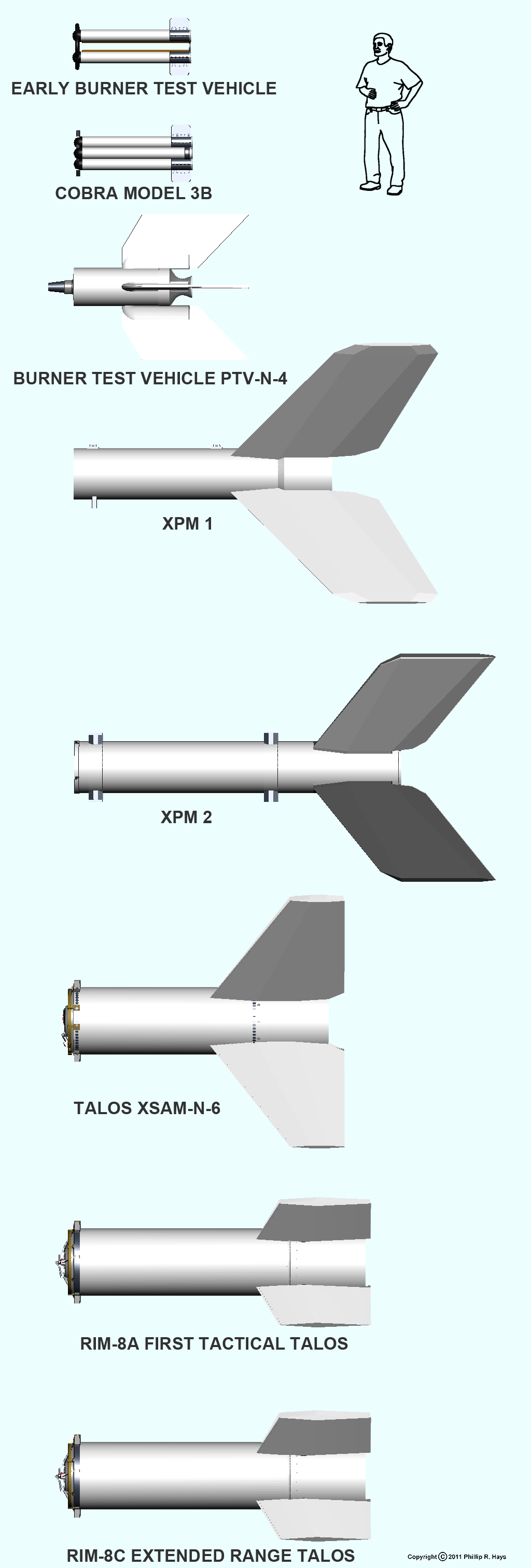 This booster was used with all Talos variations from RIM-8C on, including the Talos LAST and Vandal supersonic target programs. In addition, Talos boosters were used as first stage launch vehicles for a number of scientific atmospheric test vehicles11 and the prototype Typhon ramjet missile. At least 1400 Talos Mk 11 Mod 1 and 2 boosters were flown while Talos was active in the fleet, without a single documented failure.13